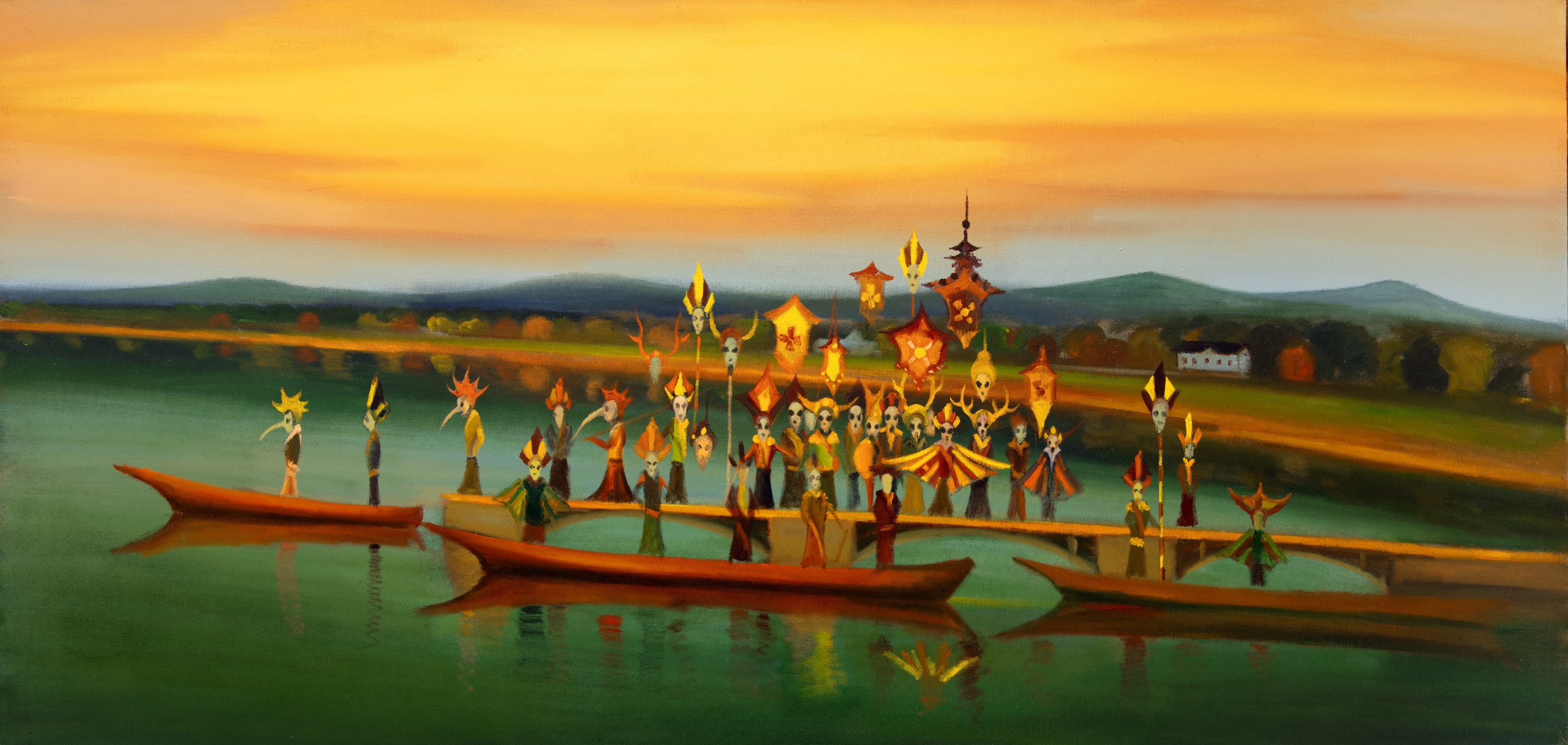 Maskaras on a Mole, 2024, 100 x 210 cm, oil on canvas